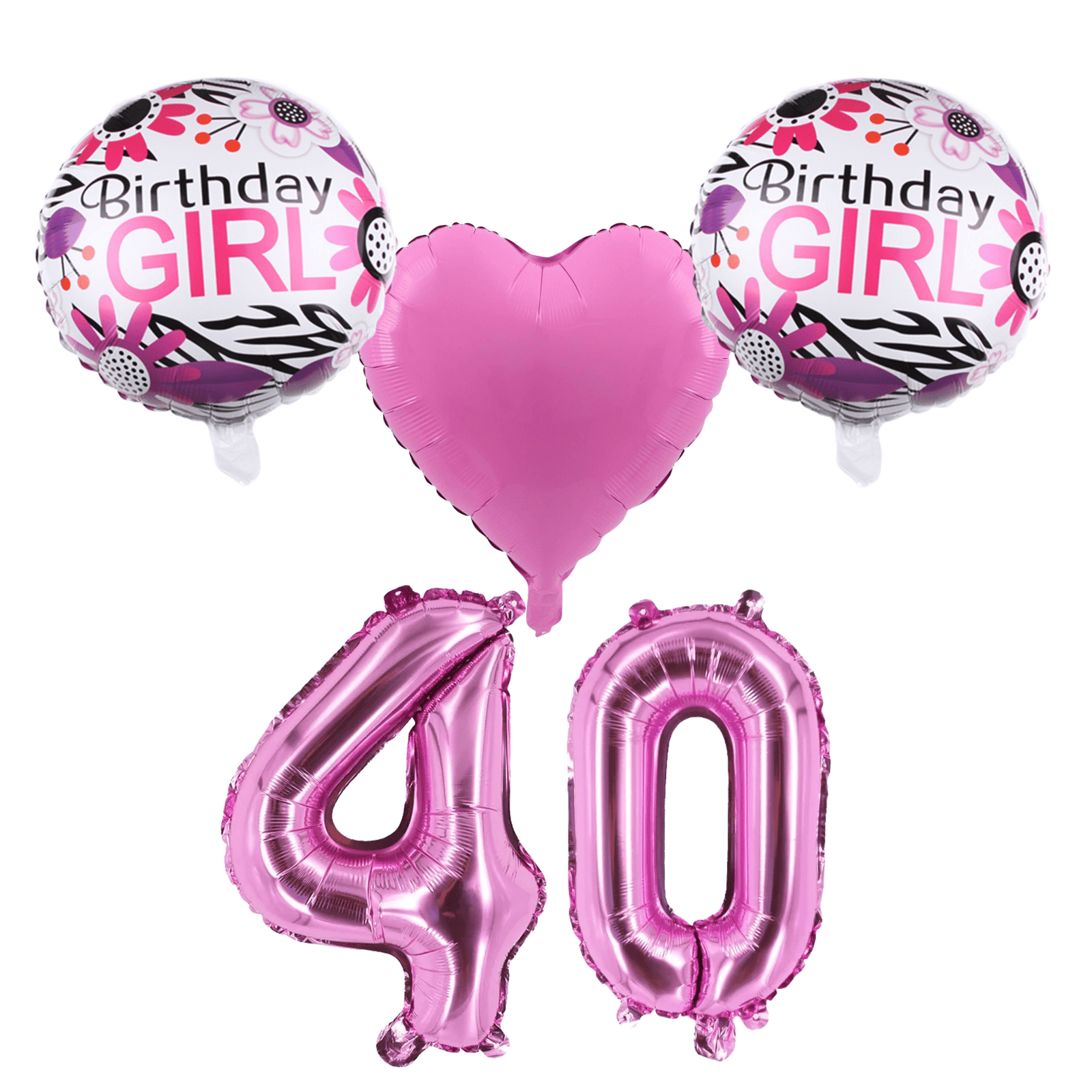 40th Birthday Girl Pink Foil Balloon Set Party Decor