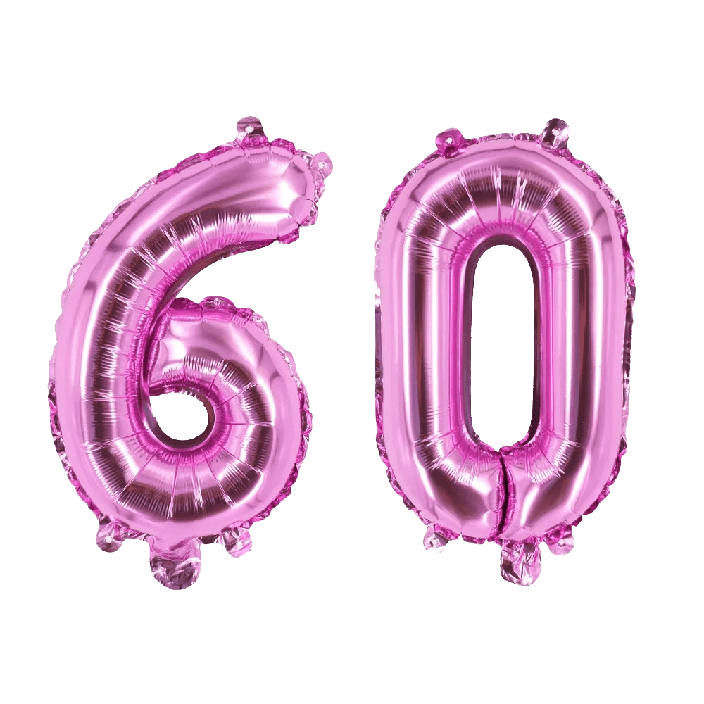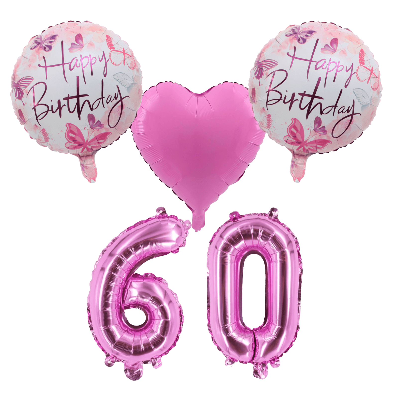 60th Birthday Party Balloons Pink Butterfly Foil Number Balloons Set