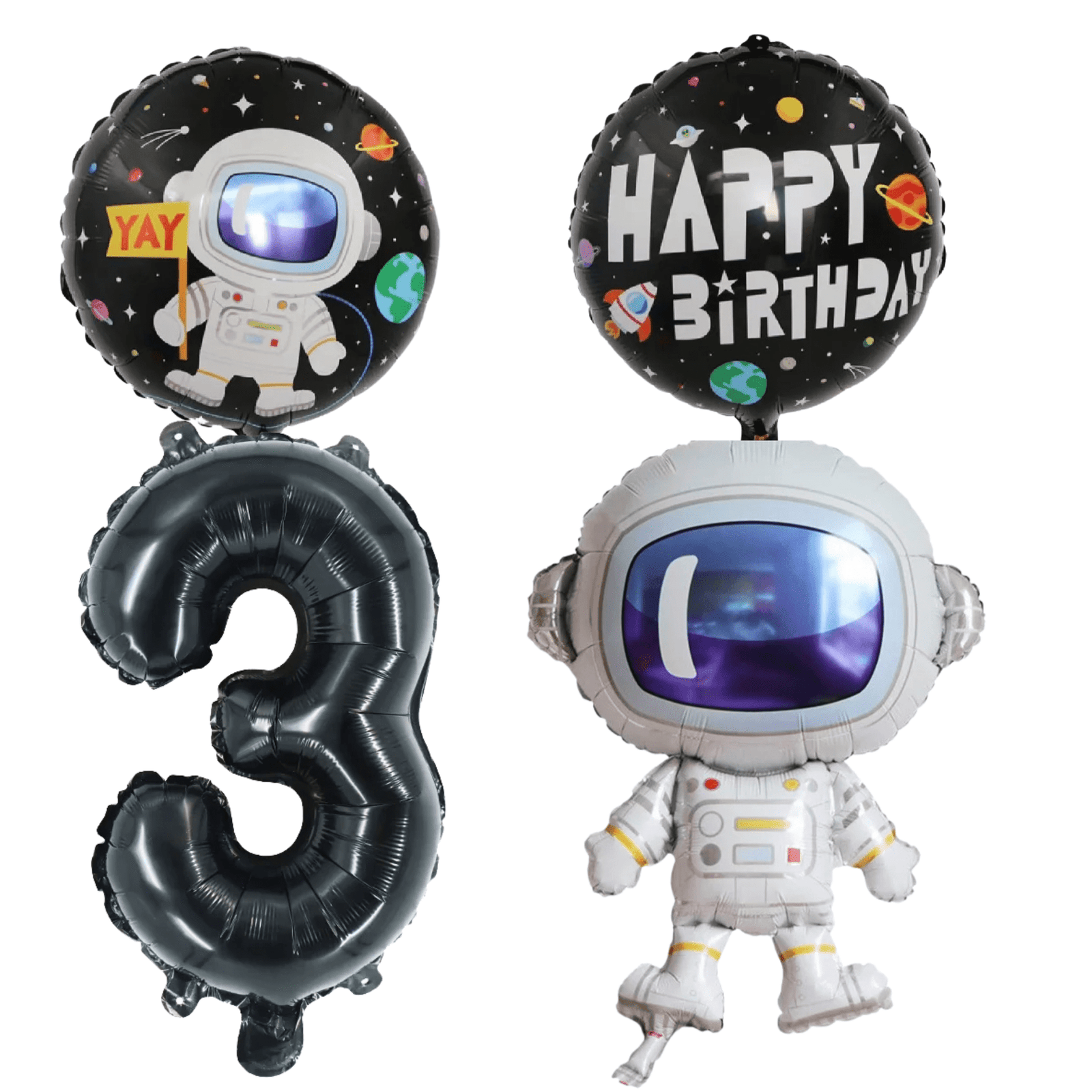 Astronaut 3rd Birthday Party Foil Balloon Set Number 3 Black White Kids