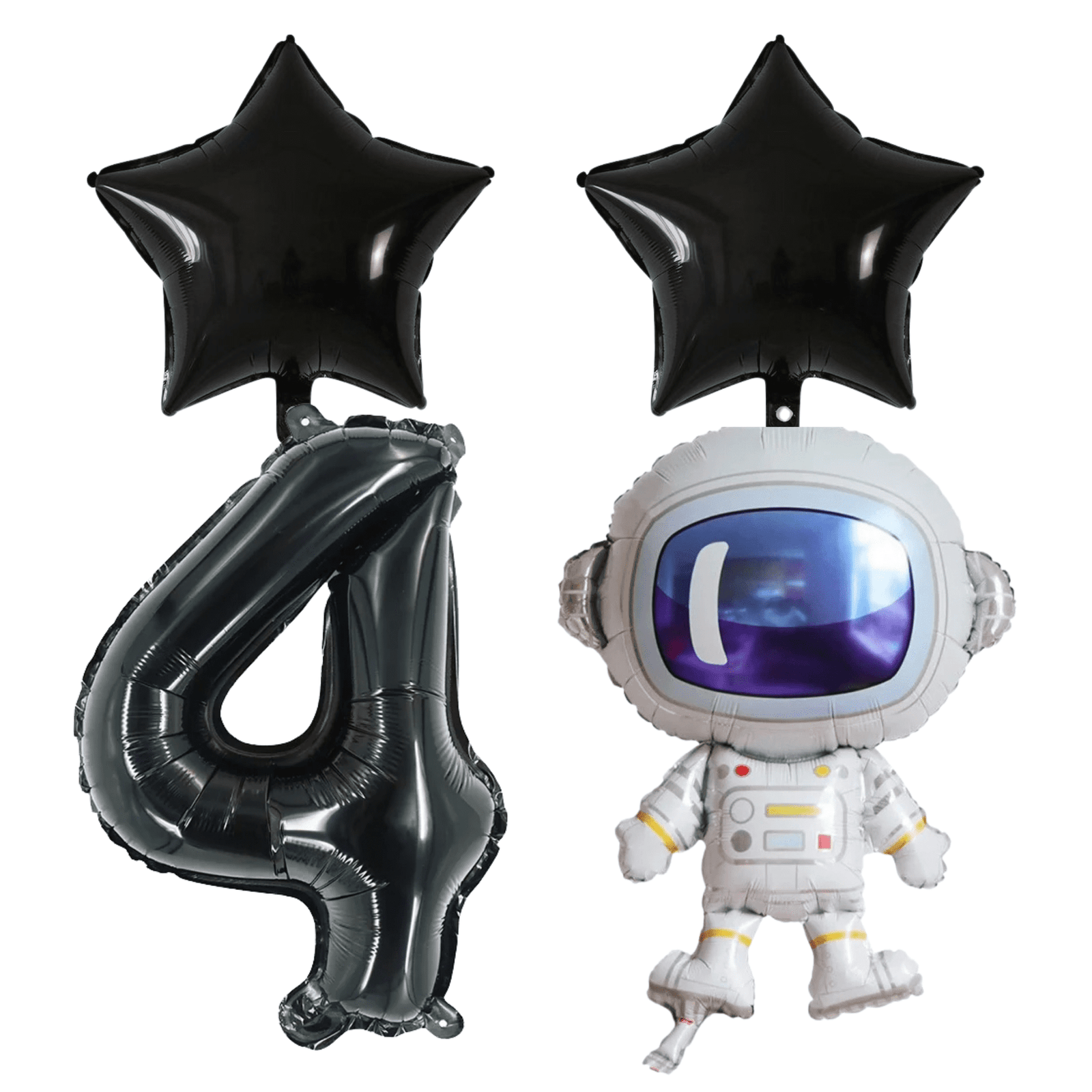 Astronaut 4th Birthday Party Foil Balloons Black Silver Number Set