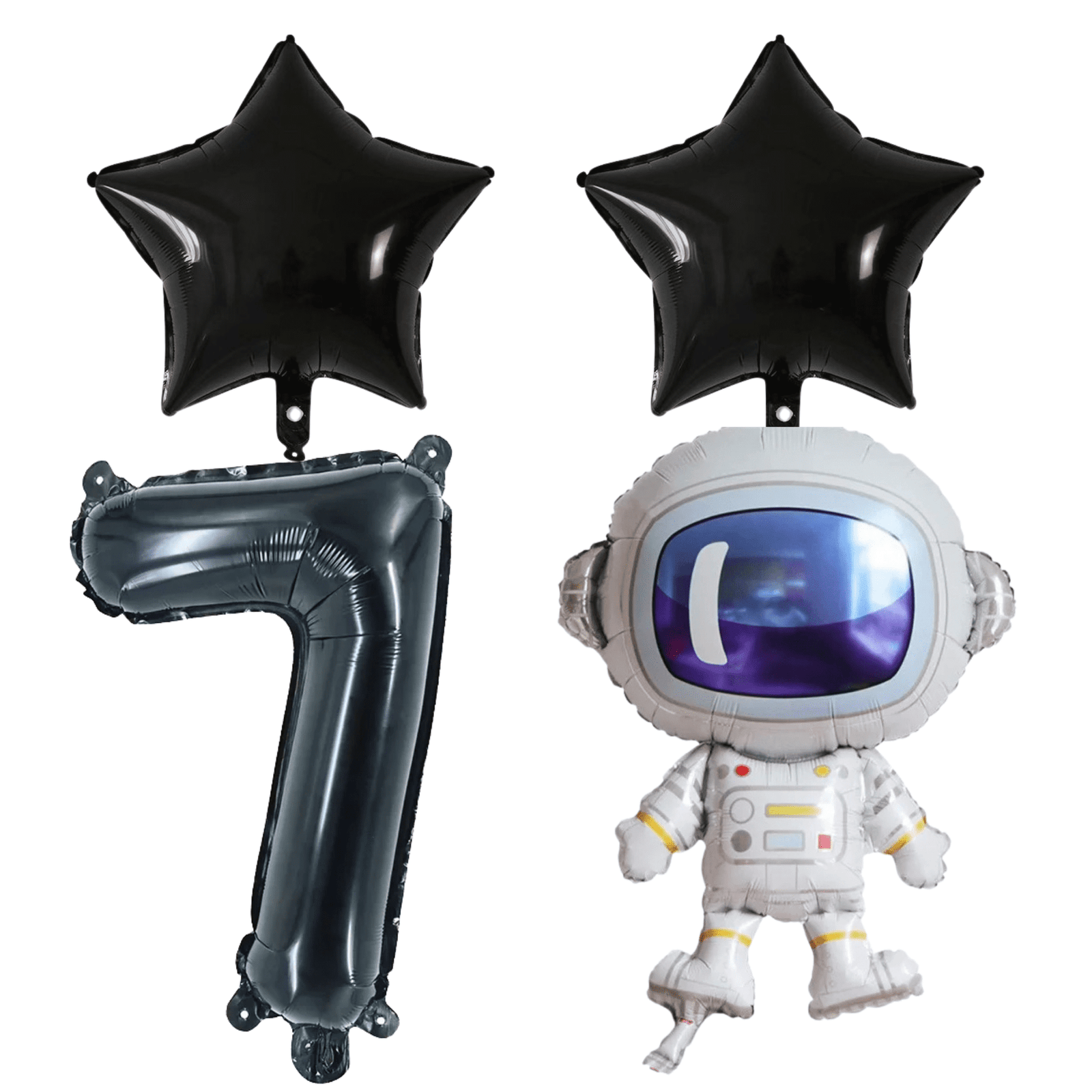Astronaut 7th Birthday Party Foil Balloons Black Number Star Set