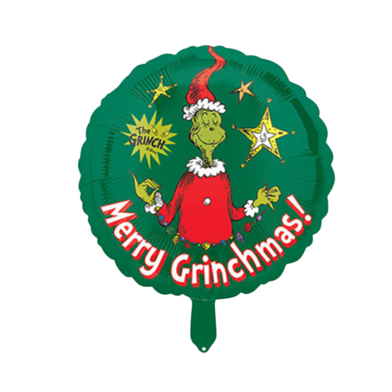 Bring the Grinch’s whimsical charm to your Christmas celebration with this 18-inch foil mylar balloon. Featuring a double-sided design with two unique Grinch images, this large and eye-catching balloon adds a festive touch to any holiday party or gathering. Versatile inflation options allow you to use air or helium, making it a versatile and fun addition to your Christmas decor. Whether you’re decorating your home, hosting a themed event, or looking for a unique gift, this Grinch-themed balloon is sure to spread holiday cheer and delight.