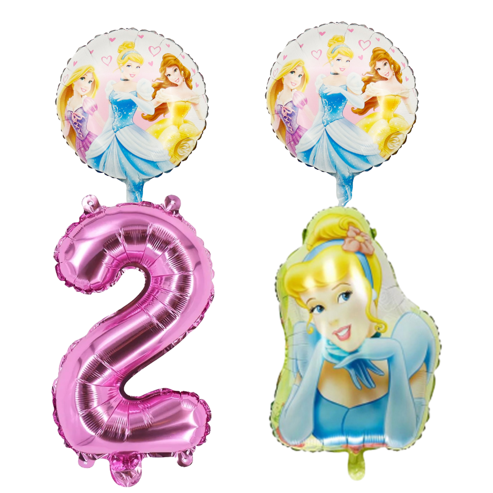 Disney Princess 2nd Birthday Foil Balloon Set Cinderella Pink Blue Girls