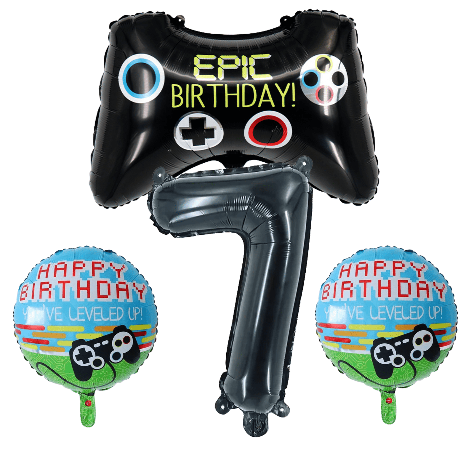 Epic Gamer 7th Birthday Party Foil Balloon Set Black Blue