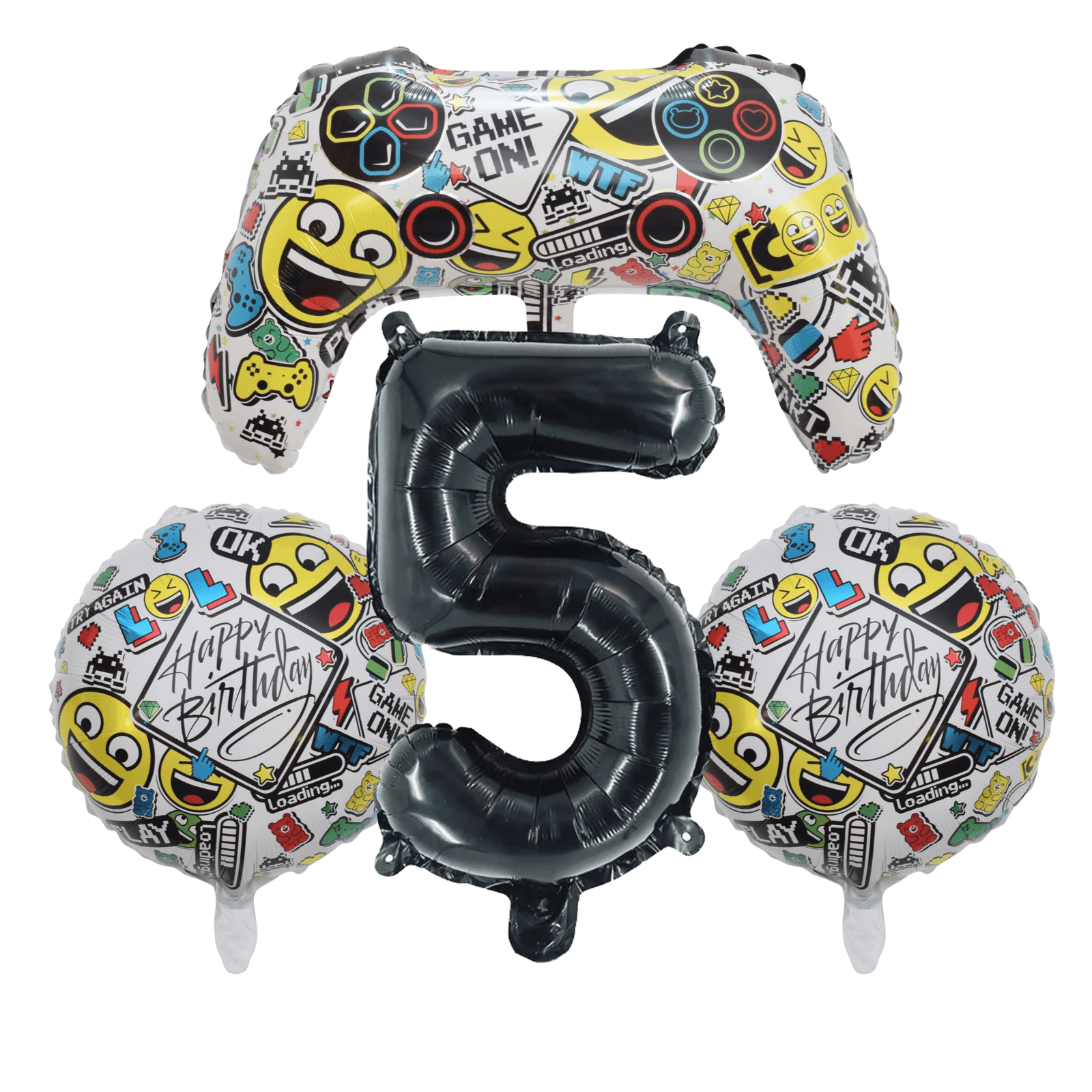 Gamer Emoji 5th Birthday Party Foil Balloon Set