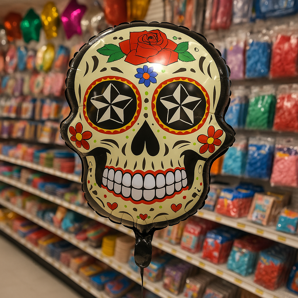 Celebrate Halloween with our captivating Halloween Skull and Roses Foil Balloon. This eerie and beautiful balloon features a stunning design of skulls and roses, perfect for adding a touch of spookiness to your Halloween party decor. Crafted from high-quality foil material, this balloon boasts durability and a shimmering effect that enhances the eerie charm. Whether you choose to inflate it with helium or air, it’s easily set up for your party decorations. Let the Skull and Roses balloon be the centerpiece of your Halloween celebrations, bringing a spooky and festive ambiance to your event!