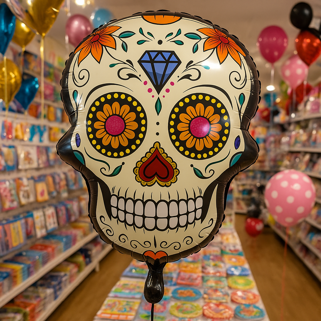 Bring a unique touch to your Halloween festivities with our Skull Diamond Art Foil Balloon. This 18″ balloon features a detailed, diamond art design of a skull, adding a sophisticated yet spooky element to your decor. Crafted from high-quality mylar, it’s easy to inflate with either helium or air. Whether you’re throwing a Halloween party or setting up a haunted house, this skull balloon is sure to be a spine-chilling hit.