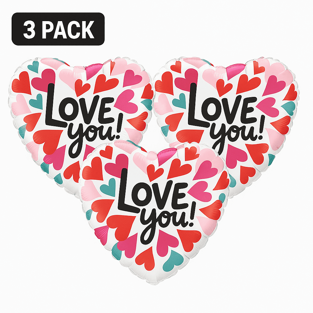 Love You! Heart Balloons 3-Pack Valentine’s Party Decor Red Pink balloons