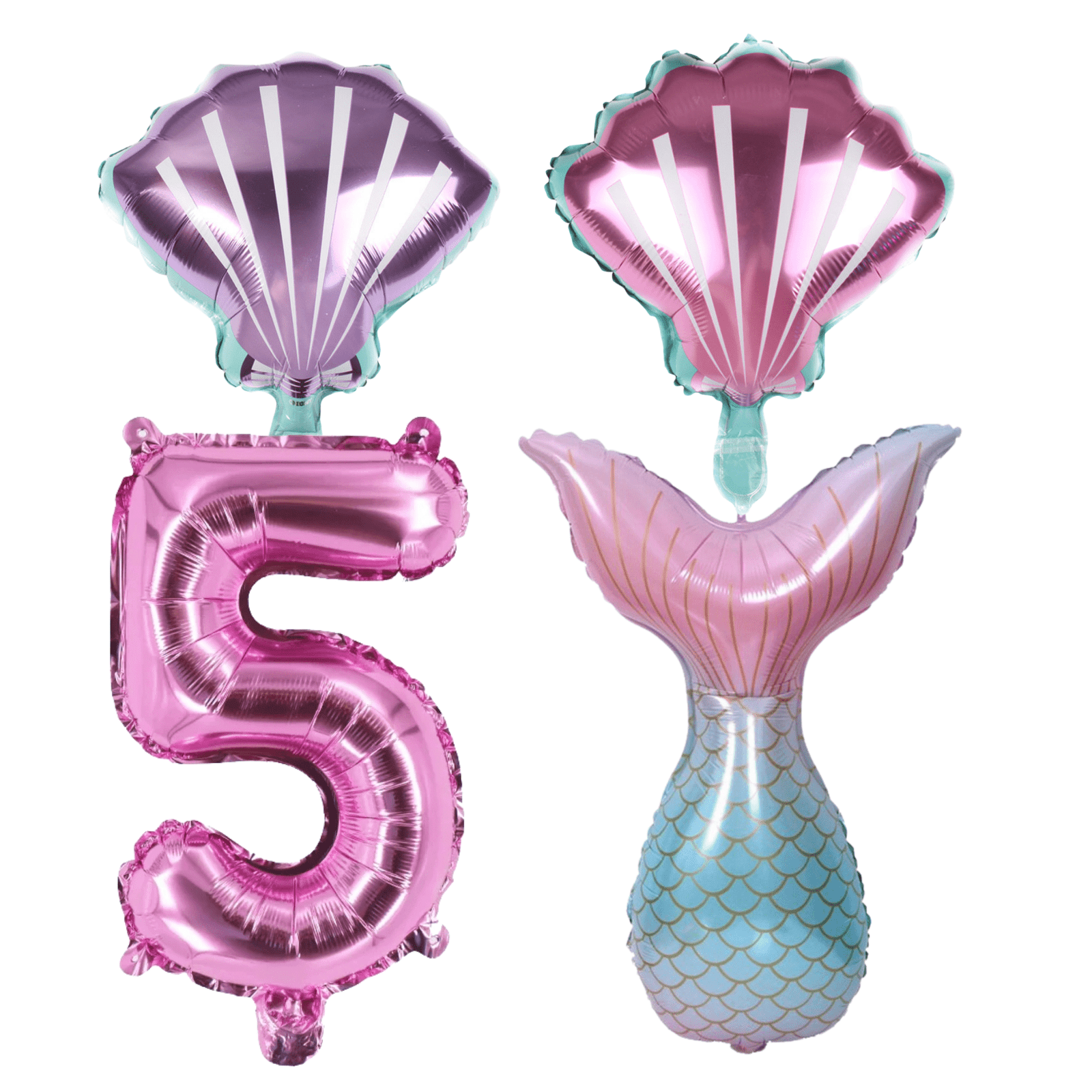 Mermaid 5th Birthday Party Foil Balloons Set Pink Teal Number