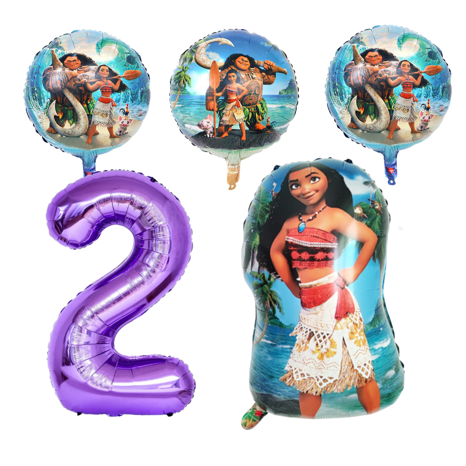 Dive into a magical Moana-themed celebration with this enchanting balloon set! Perfect for a 2nd birthday party, this vibrant set includes a large Moana foil balloon, a stunning purple number 2 foil balloon, and three smaller round foil balloons featuring Moana and Maui in their tropical paradise. Made from durable, high-quality foil, these balloons add a touch of Polynesian magic to any party décor. These Moana 2nd Birthday Party Foil Balloon Set Purple Number 2 balloons are ideal for fans of Disney’s Moana, creating a fun and memorable atmosphere. Use them as a stunning centerpiece, a fun photo booth backdrop, or even as a unique party favor.