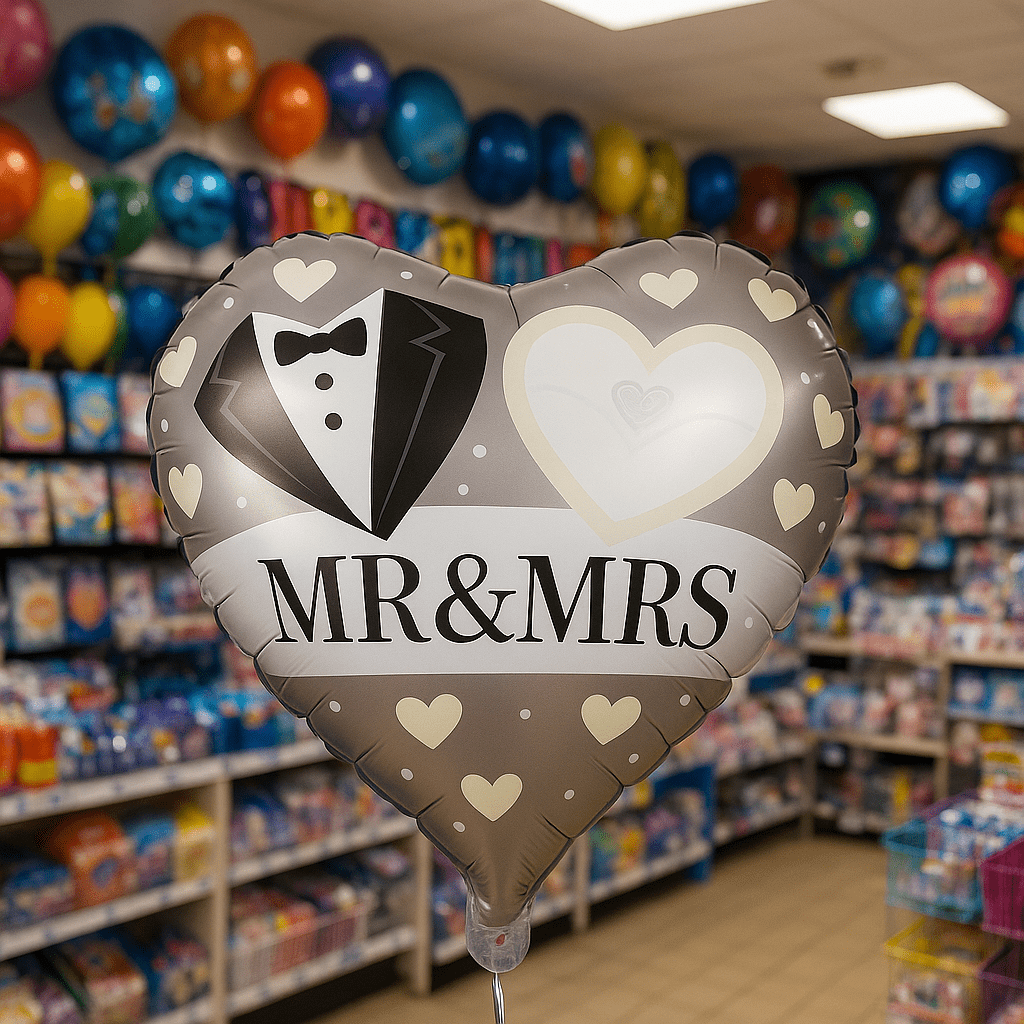 Celebrate your special day with these elegant Mr & Mrs Wedding Heart Foil Balloons! This 3-pack of beautiful heart-shaped balloons is perfect for adding a touch of romance and sophistication to your wedding reception or anniversary party. The Mr & Mrs Wedding Heart Foil Balloons 3-Pack features three large foil balloons, each showcasing a tuxedo, hearts, and the charming “Mr & Mrs” inscription. These durable foil balloons are easy to inflate with helium or air, and their lovely beige and black design will create a stunning atmosphere. Ideal for wedding celebrations, engagement parties, or even romantic anniversaries, these balloons are sure to create unforgettable memories! Use them as a beautiful centerpiece, a fun photo backdrop, or a unique gift for the happy couple.
