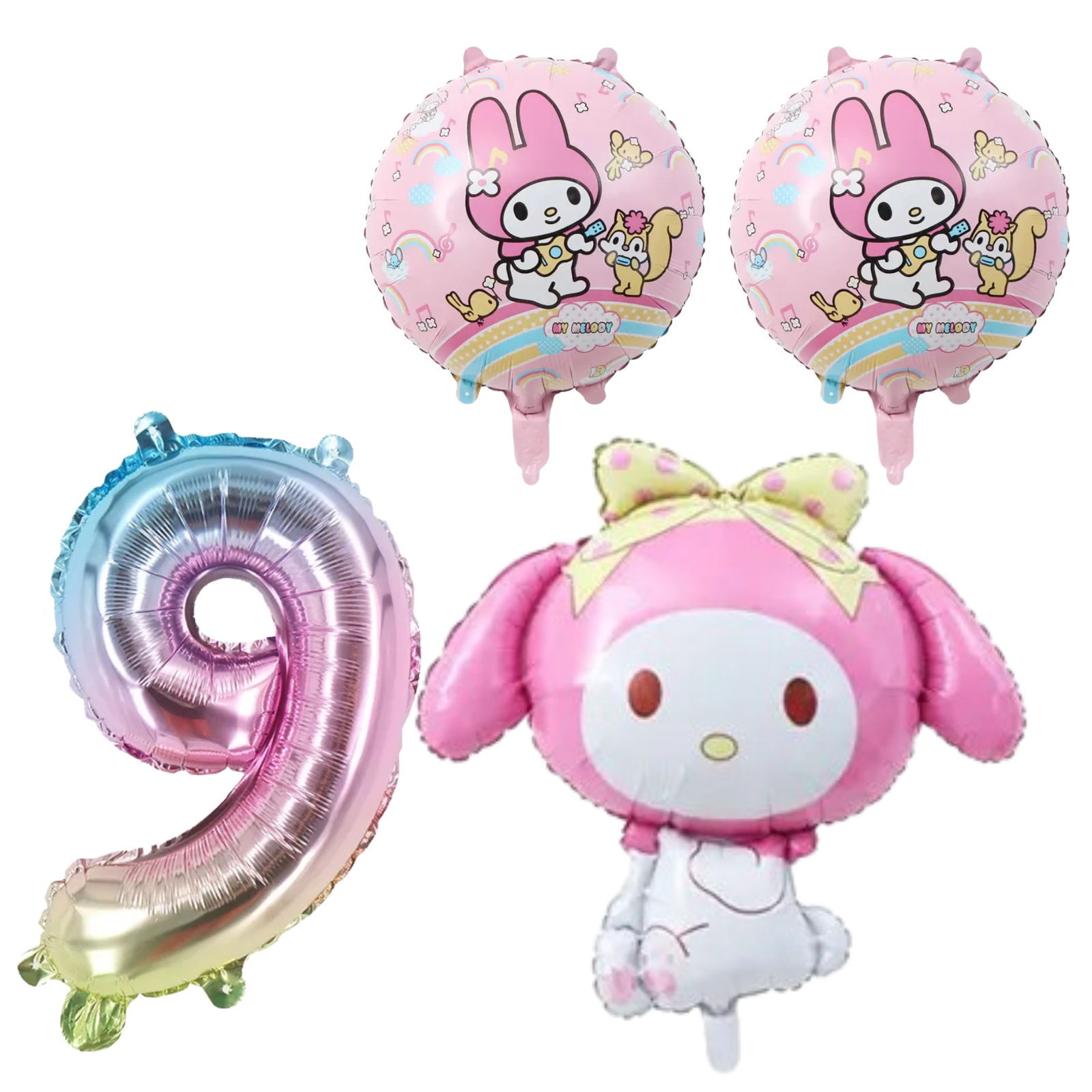 My Melody 9th Birthday Party Balloons Pink Rainbow Foil 4pc balloons