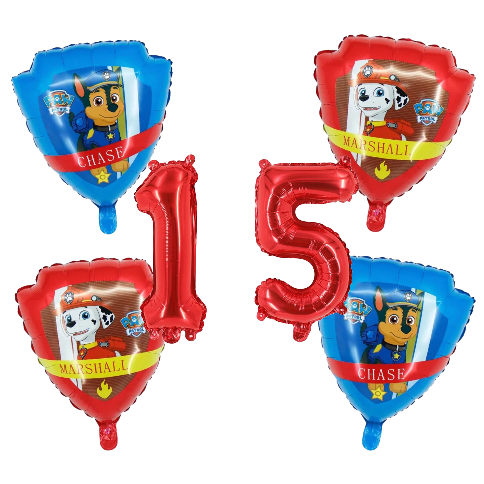 Paw Patrol 15th Birthday Foil Balloon Set Red Blue Number