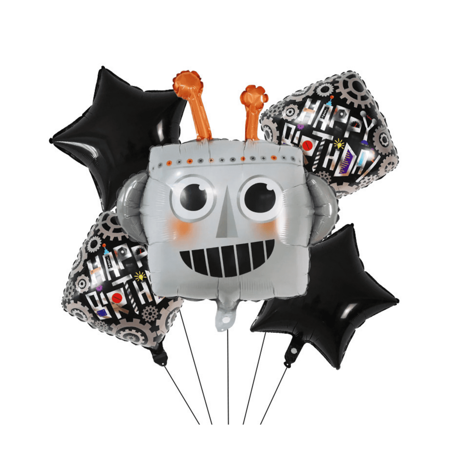 Robot Birthday Party Balloon Set with Black Stars and Happy Birthday Mylar Balloons
