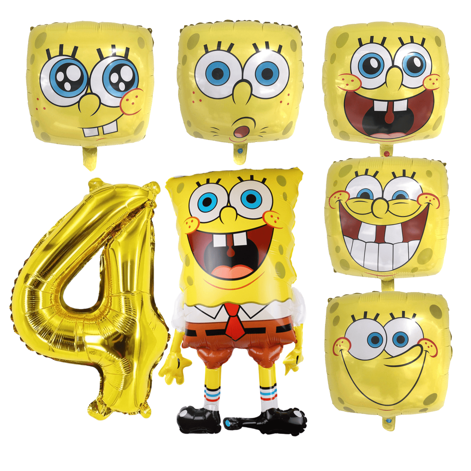Dive into a fun-filled 4th birthday celebration with this Spongebob Squarepants Foil Balloon Set! This vibrant set includes a large Spongebob character balloon, a gold number “4” balloon, and several fun Spongebob Squarepants face balloons. Made of durable, high-quality foil, these balloons feature Spongebob’s iconic bright yellow color and cheerful expressions. Perfect for a 4-year-old’s Spongebob-themed birthday party, this set is a hit for any kids’ party, creating a joyful atmosphere that kids will adore. Use them as a stunning centerpiece, photo booth backdrop, or a memorable gift! This Spongebob Squarepants 4th Birthday Foil Balloon Set Gold Yellow Kids will make your party unforgettable.