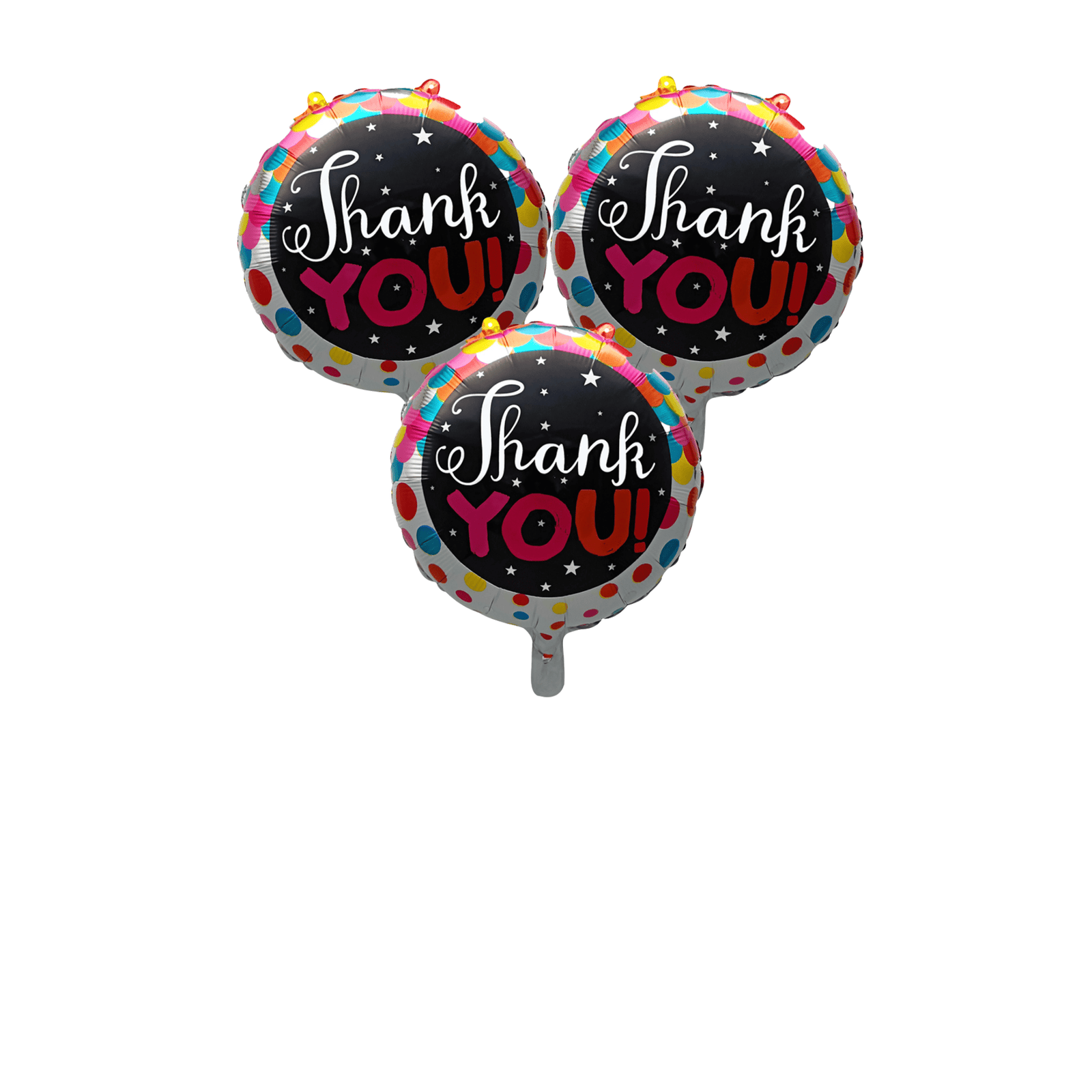 Set includes 3 “Thank You!” mylar balloons